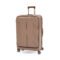 A sleek and durable medium-sized hardside check-in suitcase from the Nasher Miles Alexandria collection, made from scratch-resistant polypropylene in a modern peach-grey or beige color. It features smooth-rolling double spinner wheels and an integrated TSA lock for secure travel.