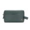 A durable, stylish wash bag made of genuine leather in a distinctive dark green hue, perfect for organizing grooming essentials during travel.